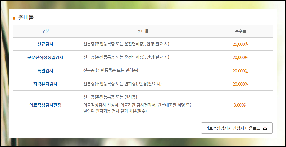 자격유지검사 종류별로 필요한 준비물이 있습니다. 운전 적성 평가는 안경 착용자의 경우 반드시 안경을 소지해야 하며, 신분증과 수수료도 필요해요. 의료적성 평가는 더 많은 준비물이 요구되지만 수수료는 3,000원으로 비교적 저렴합니다. 미리 준비해두면 검사 당일 불필요한 시간 소모를 줄일 수 있어요.