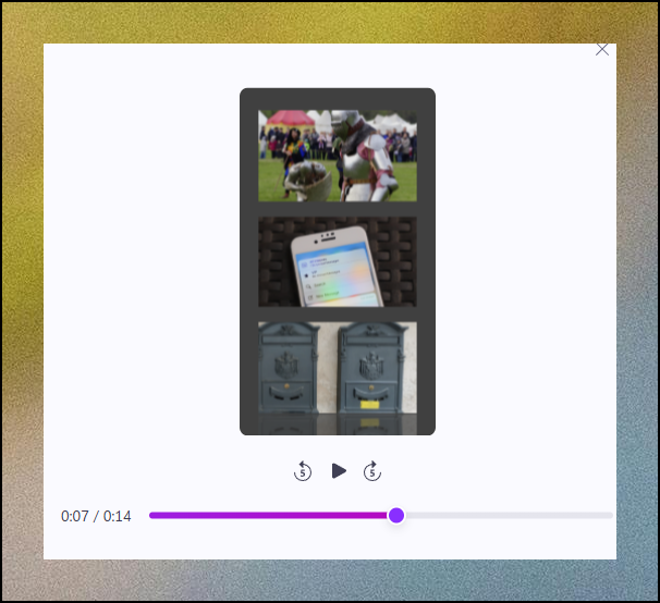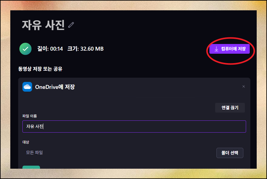 모든 과정이 끝나면 멋진 사진으로 만들어진 동영상이 자동으로 완성됩니다. 프로그램이 인코딩을 진행하여 최종 파일을 제작해주고, 이 결과물은 PC에 저장됩니다. 완성된 작품은 클립챔프 편집기에서 더 세부적으로 수정할 수도 있어요.