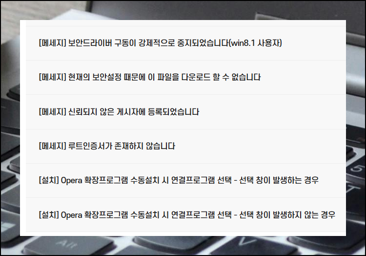 제작사 사이트를 통해 키보드 보호 프로그램에 대한 설치법과 문제해결 방식을 알아봤습니다. 동일한 오류가 반복된다고 같은 해결책만 시도하는 것은 효율적이지 않아요.