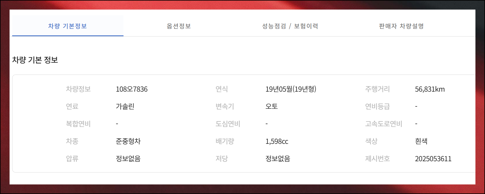 차량의 전반적인 정보와 성능 점검 결과를 확인할 수 있어요. 가장 신경 써야 할 부분은 사고 이력, 침수 이력, 수리 이력입니다. 이런 문제가 있는 차량은 아무리 가격이 저렴해도 피하는 것이 좋아요.