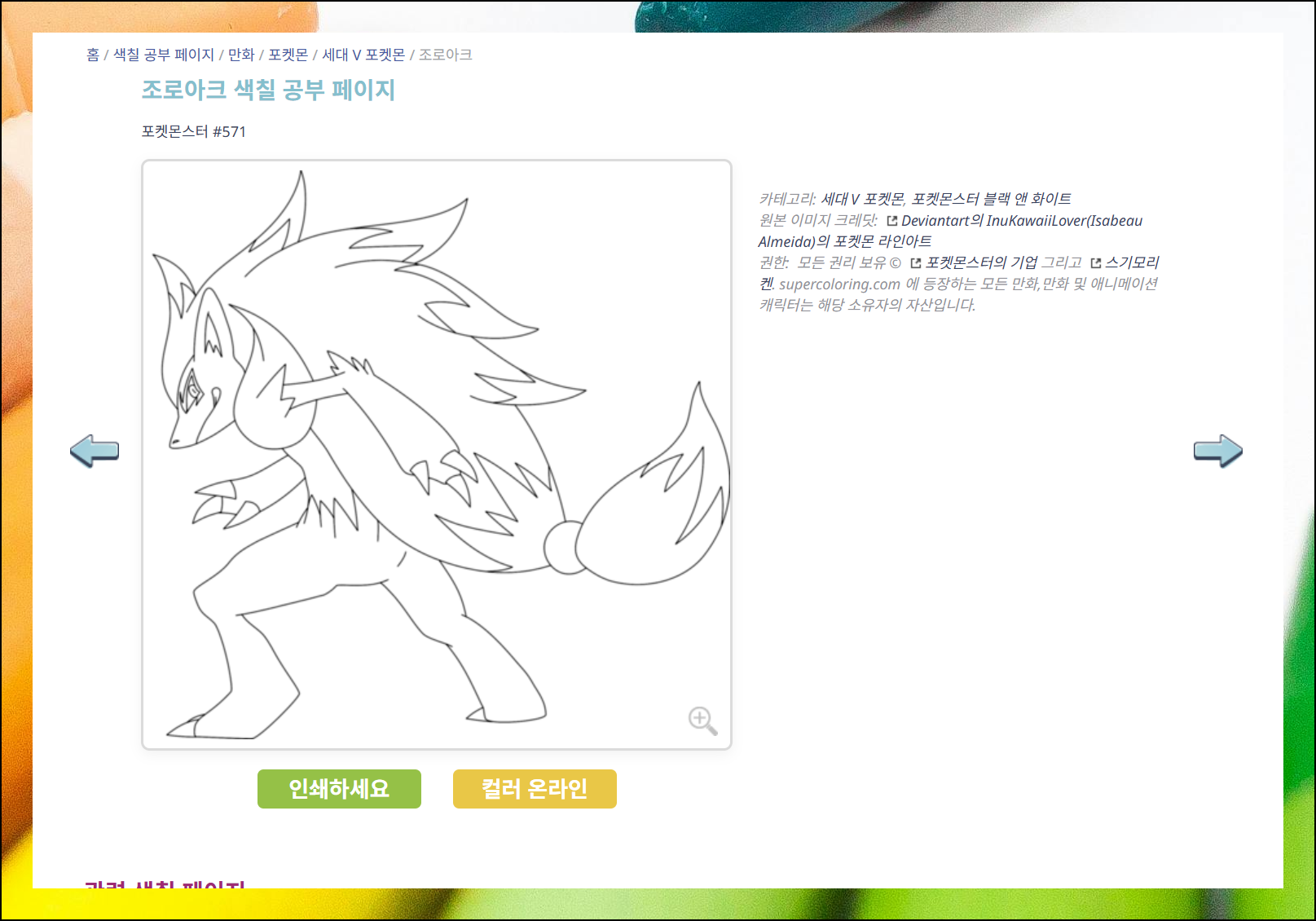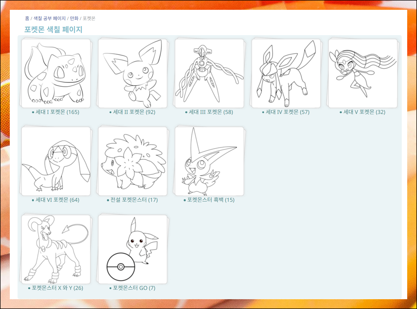 포켓몬스터 색칠공부 무료프린트 사이트 이용 가이드