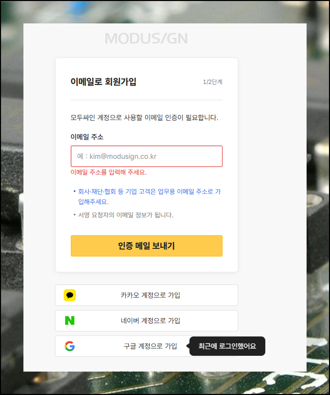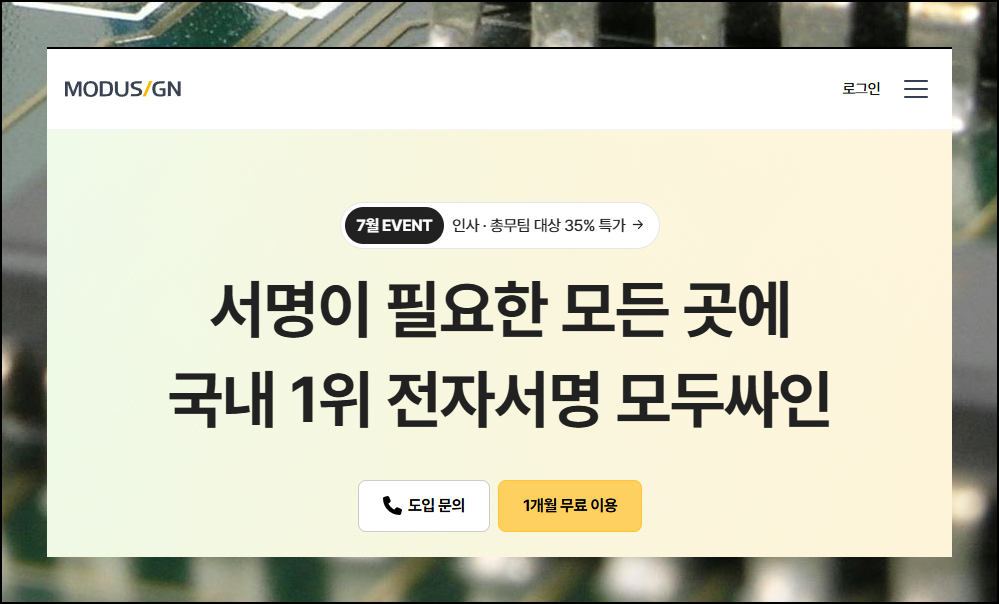모두싸인 홈페이지에 접속해보니 1개월 무료 이용 이벤트가 진행 중이네요. 전자계약을 자주 사용하는 분들에게는 좋은 기회일 것 같아요. 전자직인 제작 프로그램을 사용하려면 로그인이 반드시 필요해요. 특별한 조건이나 복잡한 절차 없이 간단하게 회원가입을 할 수 있습니다.