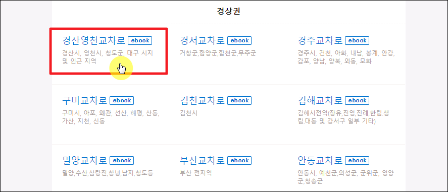 ▲ 경상권 카테고리를 선택해 보았습니다.