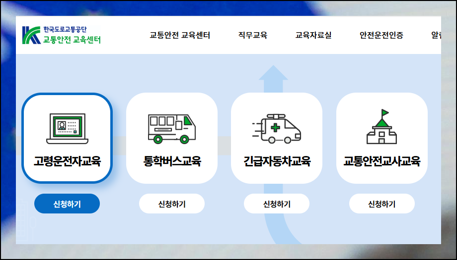 교통안전 교육센터 웹사이트에 접속하시면 됩니다. 사이트 메인 페이지에서 75세이상 고령운전자 대상 수업 서비스 신청 메뉴를 찾을 수 있어요. 운전면허 적성검사 갱신을 위해서는 반드시 완료해야 하는 과정이니까 놓치지 마세요.