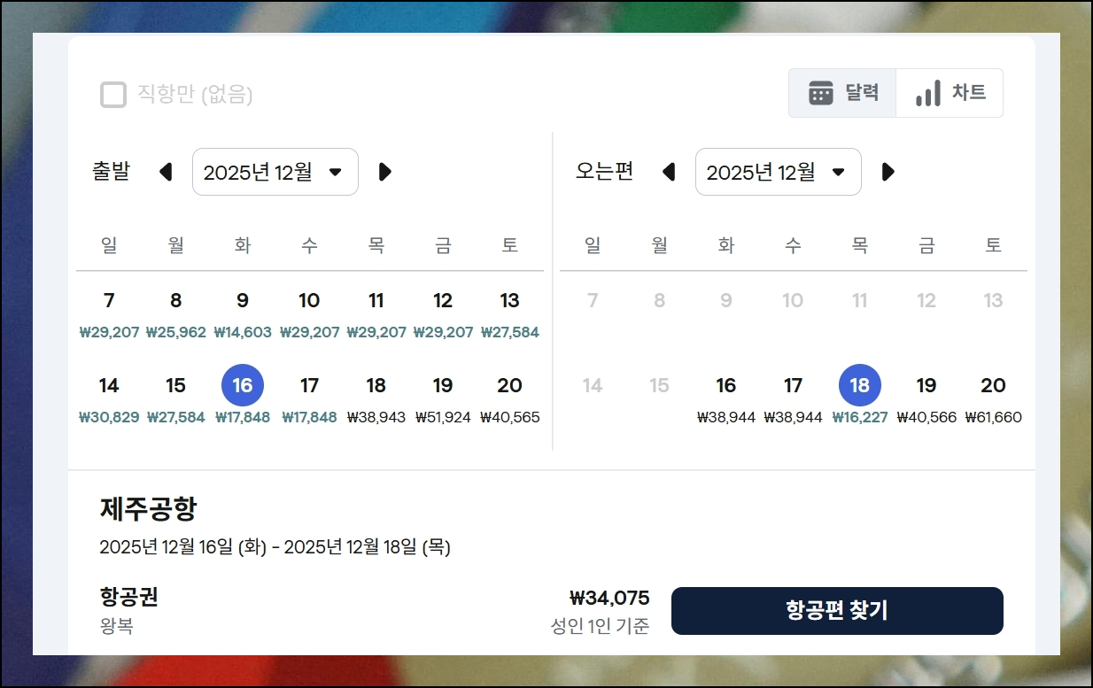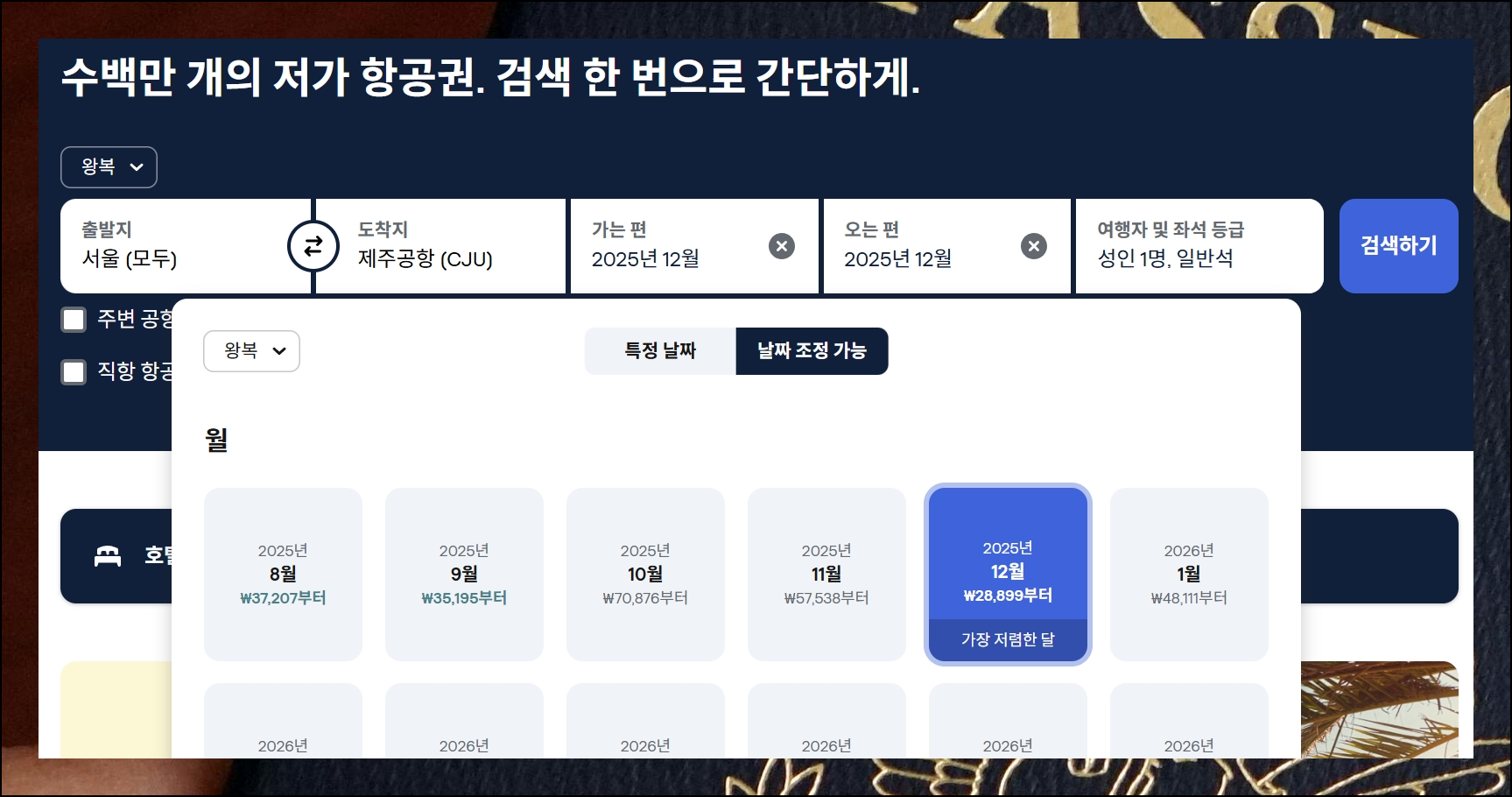 싸게 나온 항공권을 탐색할 때 가장 중요한 팁이 바로 날짜 유연성 활용입니다. 출발지와 목적지 입력 시 날짜 조정 가능 옵션을 체크하면 해당 달 전체 요금 변동을 확인할 수 있어요. 해당 방버을 통해 하루 이틀 일정 조정만으로도 수십만원 절약이 가능합니다.