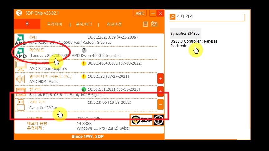 3dp chip 프로그램을 실행하면 다음과 같은 화면이 나타나요. 여기에서 메인보드나 기타 기기 부분을 클릭해 보세요. 그럼 드라이버 설치 마법사가 나타나거나 내 장치에 알맞은 드라이버를 다운 받을 수 있는 웹페이지가 열려요. 그럼 안내에 따라 드라이버 프로그램을 설치하면 돼요.