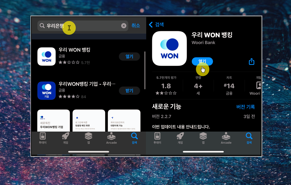 해당 방법을 사용하기 위해서는 가장 먼저 스마트폰에 앱을 하나 설치해야 합니다. 우리 WON 뱅킹 앱인데요. 우리나라 국민이라면 상당수가 우리은행을 사용해본 경험이 있을 겁니다. 그곳에서 만든 앱 인데요. 해당 은행 계좌가 있다면 꼭 사용하는 것이 좋습니다. 여러 업무를 스마트폰으로 진행할 수 있기 때문이에요.