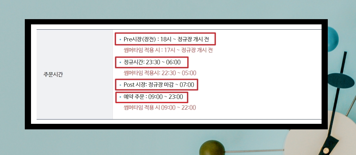 2. 미국증시에서는 정규 거래 외에도 Pre시장, Post 시장이 존재합니다. 썸머타임 적용 여부에 따라 개장하는 시각에 차이가 생기죠.
