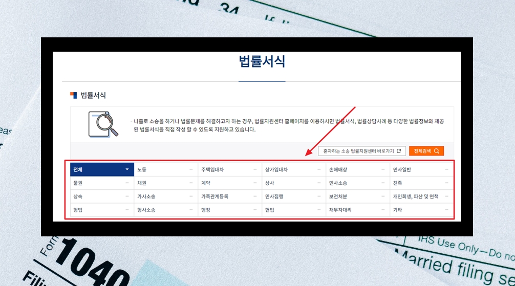 4. 이곳에서 제공하는 법률서식은 꽤 많아요. 카테고리 별로 잘 나뉘어져 있는데요. 노동, 채권, 계약, 손해배상, 물권, 상속, 형법, 행정 등 나중에 관련 문제로 인하여 법원에 제출할 문서를 작성할 때 이곳에서 서식을 검색해 보세요.