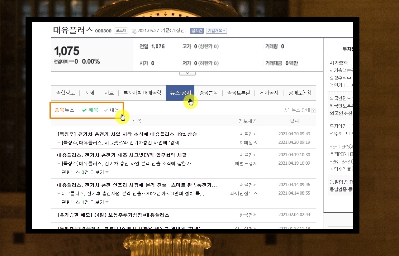 해당 종목에 대한 오늘의 뉴스나 공시자료를 확인할 수도 있는데요. 시세 정보와 함께 이러한 부분을 확인하는 것이 주식매매에 도움이 됩니다.